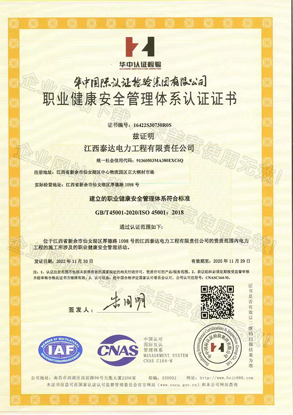 职业健康安全体系证书查看详情>>